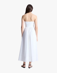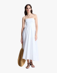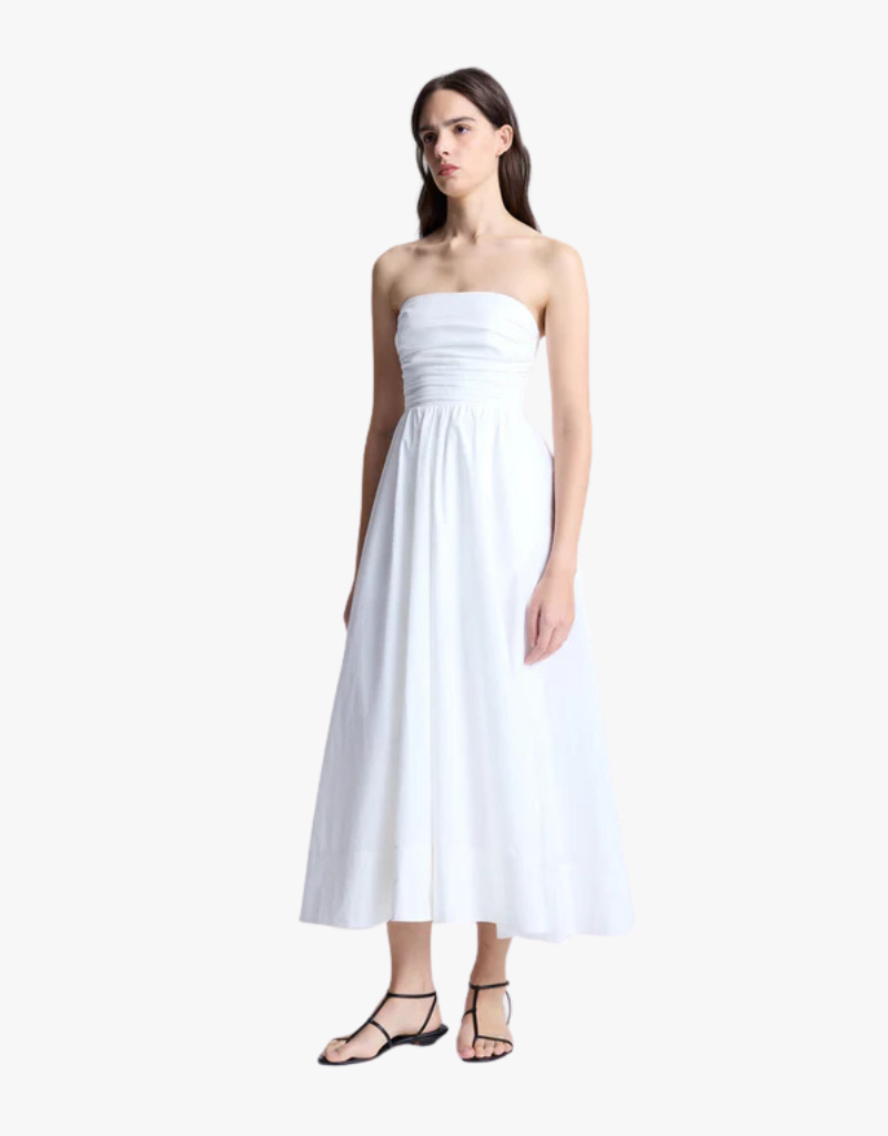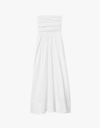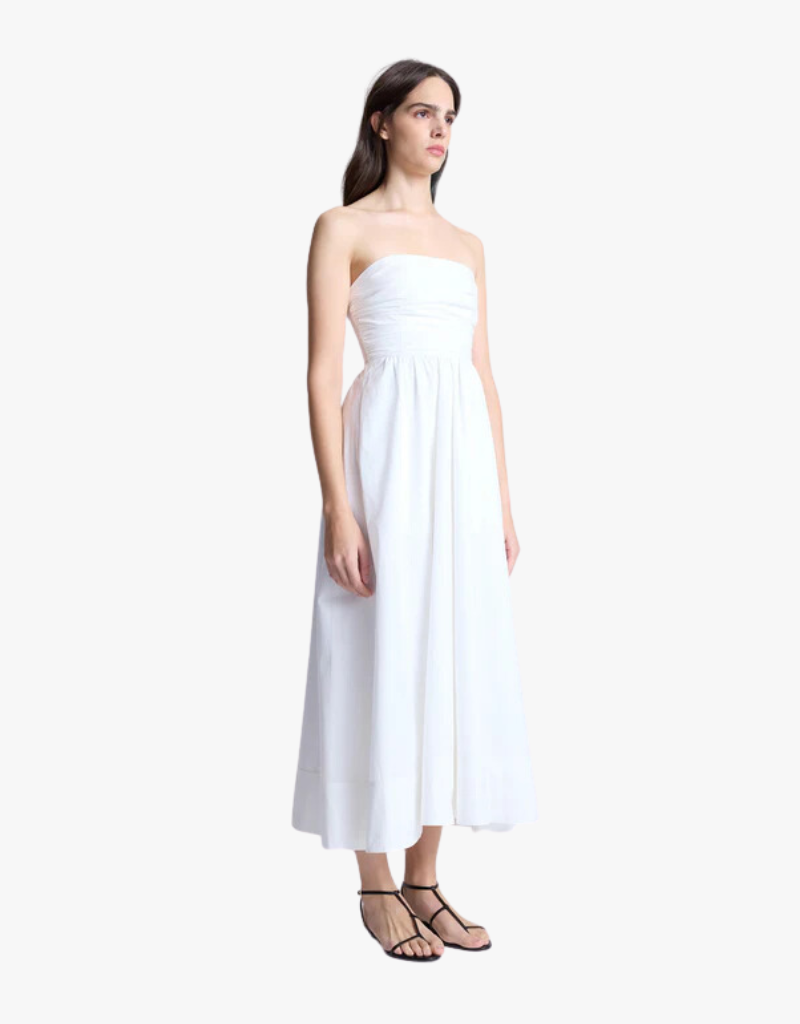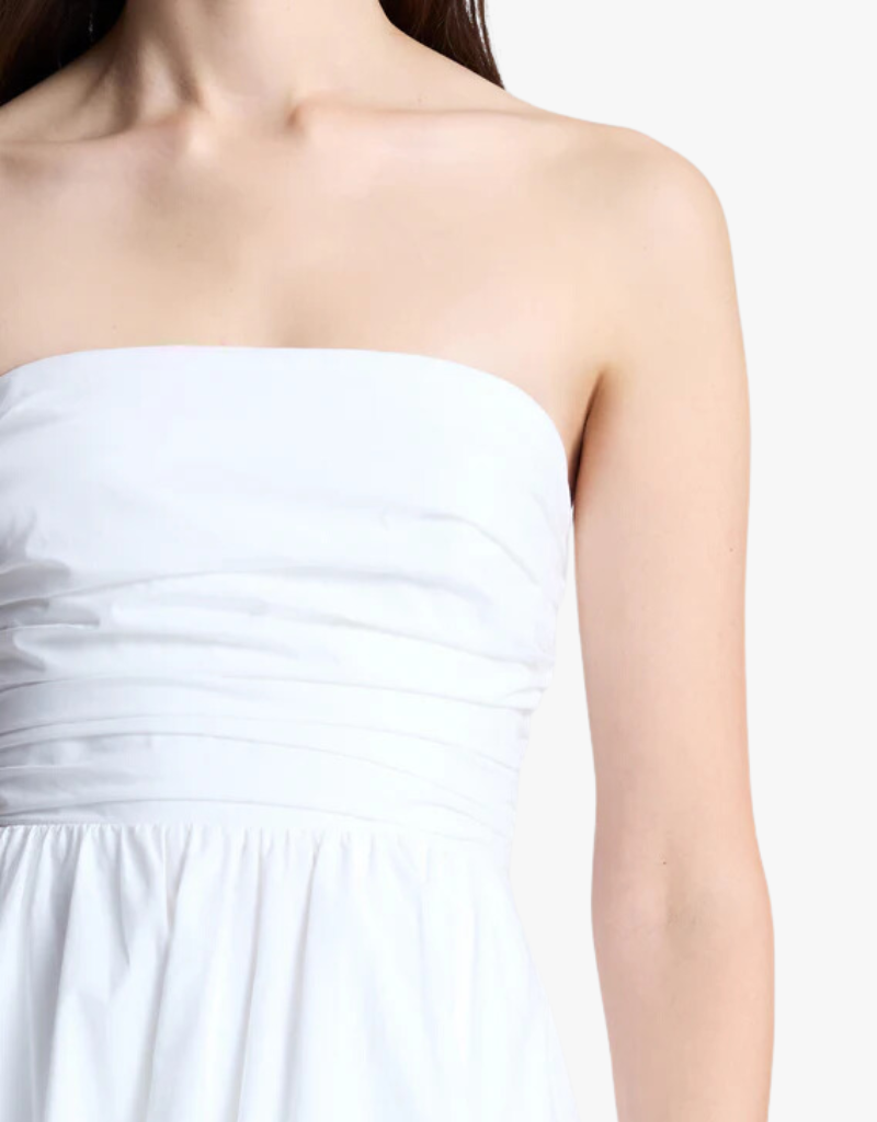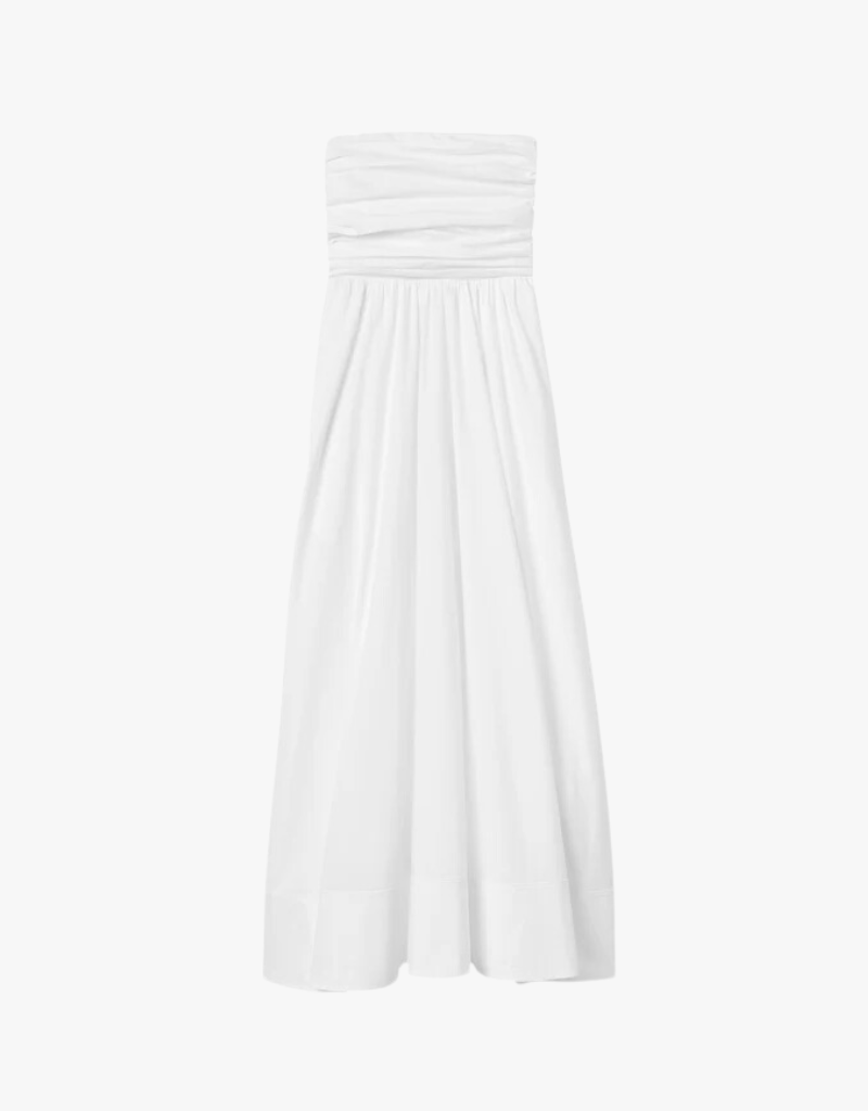 Embrace the allure of timelessness with the Tate Strapless Midi Dress, perfectly crafted from cotton fabric featuring a strapless silhouette that is expertly pleated and gathered. Complete your look of effortless elegance with this dress.