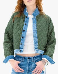 The Bleeker Street Liner is a cropped quilted jacket with contrast binding and denim-trimmed cuffs and hem. Lightweight yet warm, it’s perfect solo or layered. Add it to your wardrobe for effortless versatility.