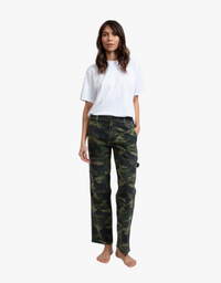 Introducing the ASKK NY Carpenter Pant in Camo, designed with practical side pockets and a straight, relaxed fit. These versatile pants are built to handle your daily activities with ease. Pair them with a simple tee for a casual vibe or dress them up for an evening occasion.