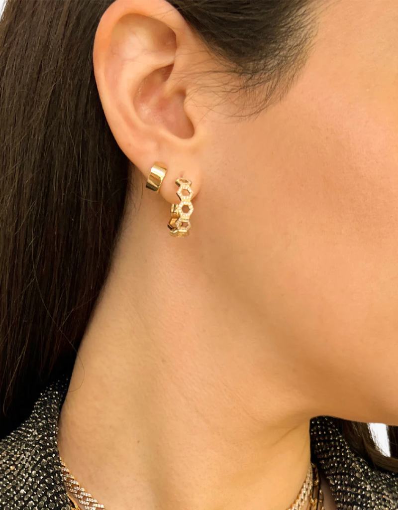 The 10mm Chubby Huggies offer a bold, modern twist on a classic style. Crafted from luxurious yellow gold, these statement earrings bring elegance and sophistication to any look.