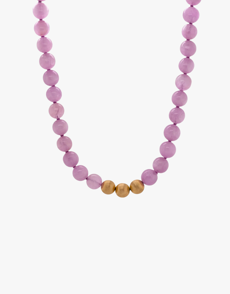 The Kunzite & Gold Beads Necklace blends soft Kunzite gemstones with gold beads, offering a sophisticated, timeless design. Perfect for everyday wear or special occasions, it’s a must-have for refined elegance.