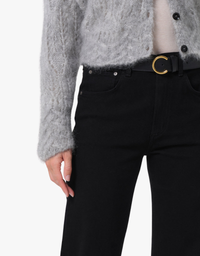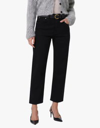 High-rise straight-leg jeans in ultra-soft cashmere-blend denim. Full-length black silhouette offers effortless versatility for everyday or dressed-up wear, pairing perfectly with crisp shirts, cozy knits, or statement tops—your go-to wardrobe essential for timeless style.