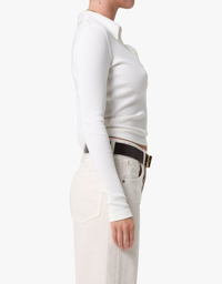 A long-sleeve polo crafted from ultra-soft, supportive ribbed cotton with a comfortable midweight feel. The fit is true to size. Layer under a blazer for a polished look or wear alone with high-rise denim for effortless everyday style.