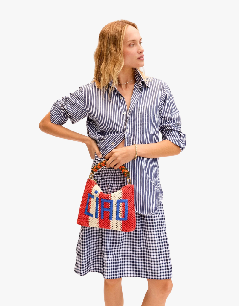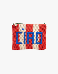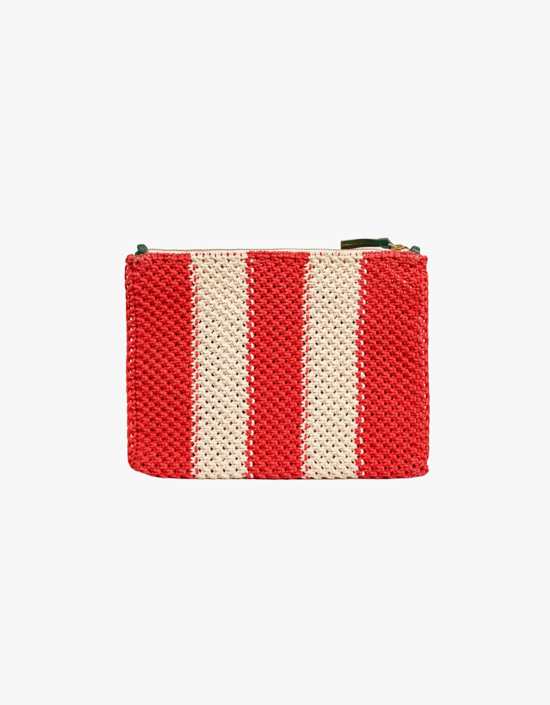 Clare V. Crochet Flat Clutch with Tabs in Cream & Bright Poppy Crochet Stripe with Ciao