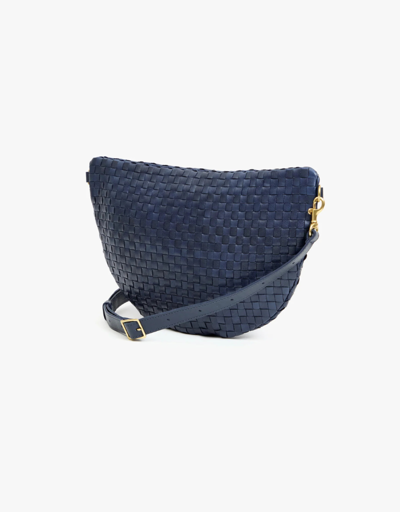 Clare V. Grande Fanny in Bleu Marine Woven Checker