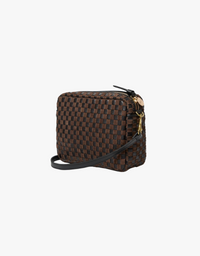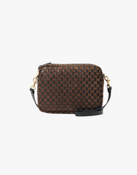 Clare V. Midi Sac Handbag in Black & Chocolate Leather & Suede Woven Checker