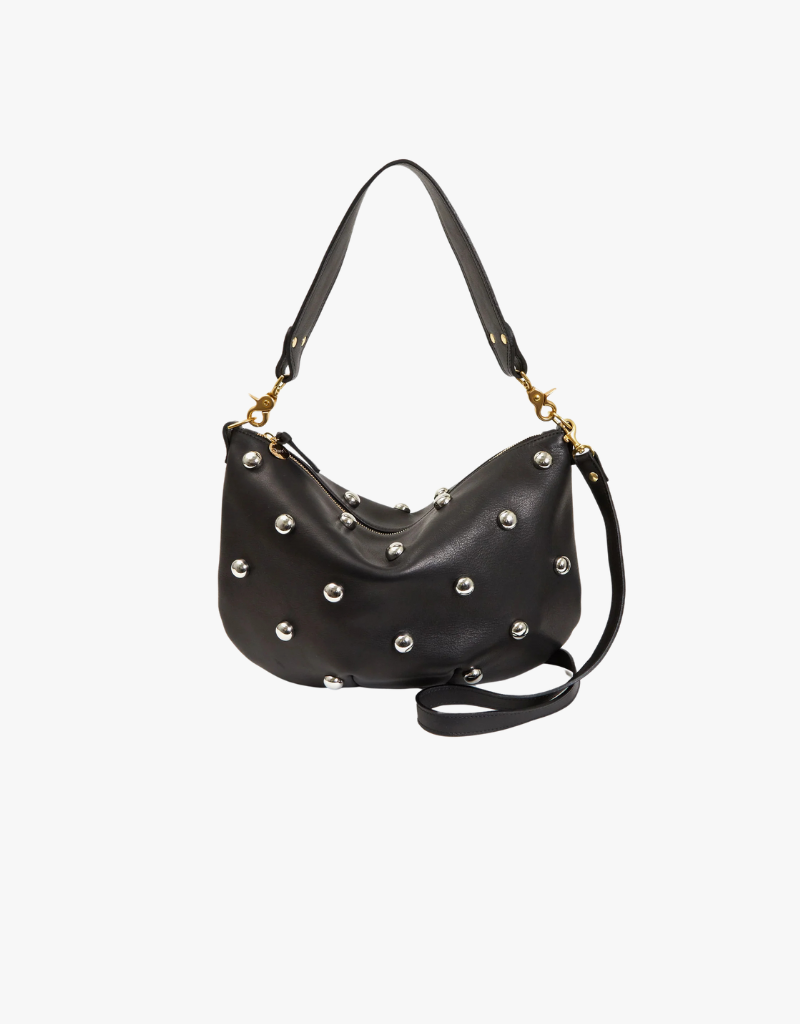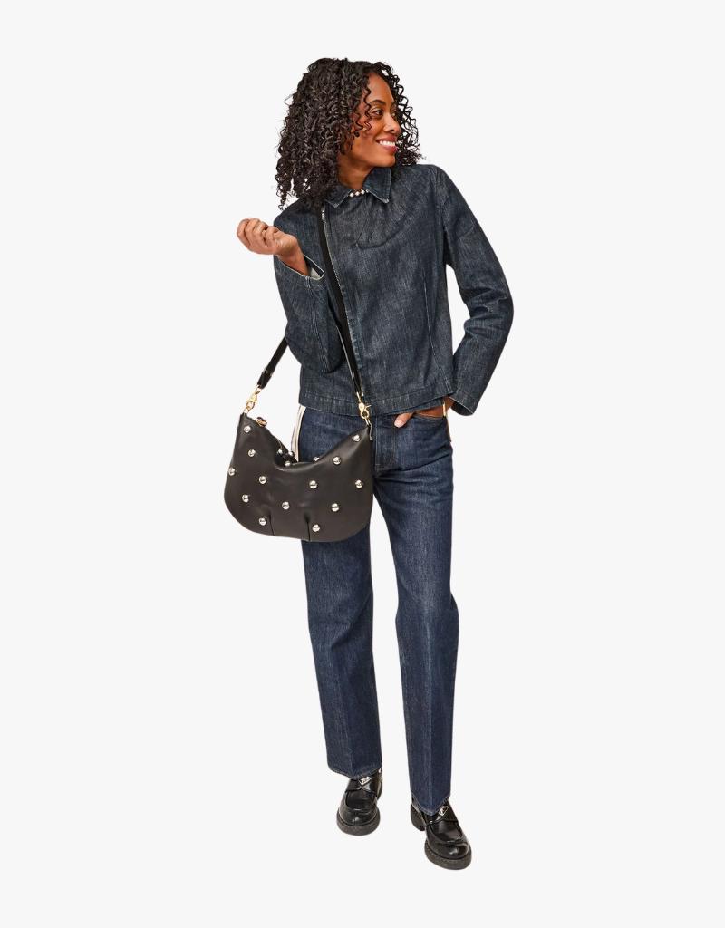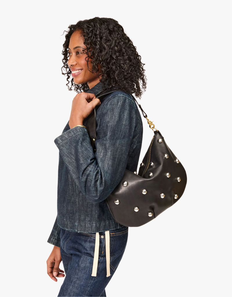 Clare V. Moyen Messenger in Black Naturelle with Studs