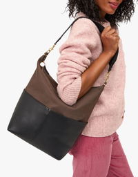 The Sophie Handbag blends the ease of a bucket bag with the function of a work bag, crafted in Italian leather and canvas with roomy pockets and a wide strap. Stay organized in style—make it your everyday essential today.
