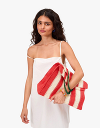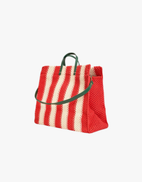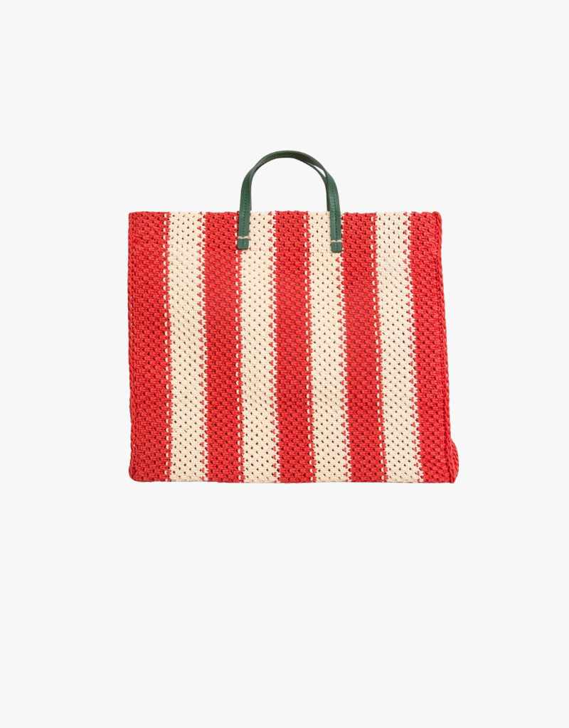 Clare V. Summer Simple Tote in Cream & Bright Poppy Crochet Stripe