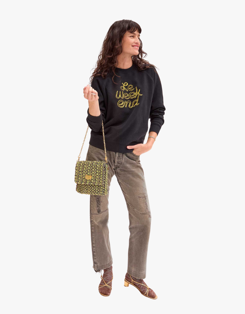 Clare V. Sweatshirt in Black with Marigold Le Weekend