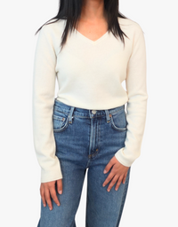 Estheme Olivia Cashmere Fitted V-Neck Sweater in Creme