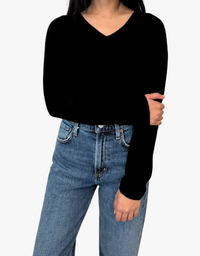 Estheme Olivia Cashmere Fitted V-Neck Sweater in Noir