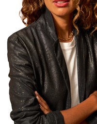 Transform your wardrobe with this Frank & Eileen Dublin Blazer, crafted from Italian performance denim in a stunning gold glitter finish, detailed with signature oversized pockets and sleeves that scrunch for effortless styling. Whether layered over basics or paired with evening wear, this blazer delivers the polished sophistication your collection deserves.