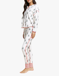 Honeydew Back in Bed Long Henley Set in Ivory Trees