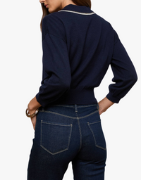 L'agence Malaki 3/4 Sleeve Collared Sweater in Midnight in Ivory & Gold