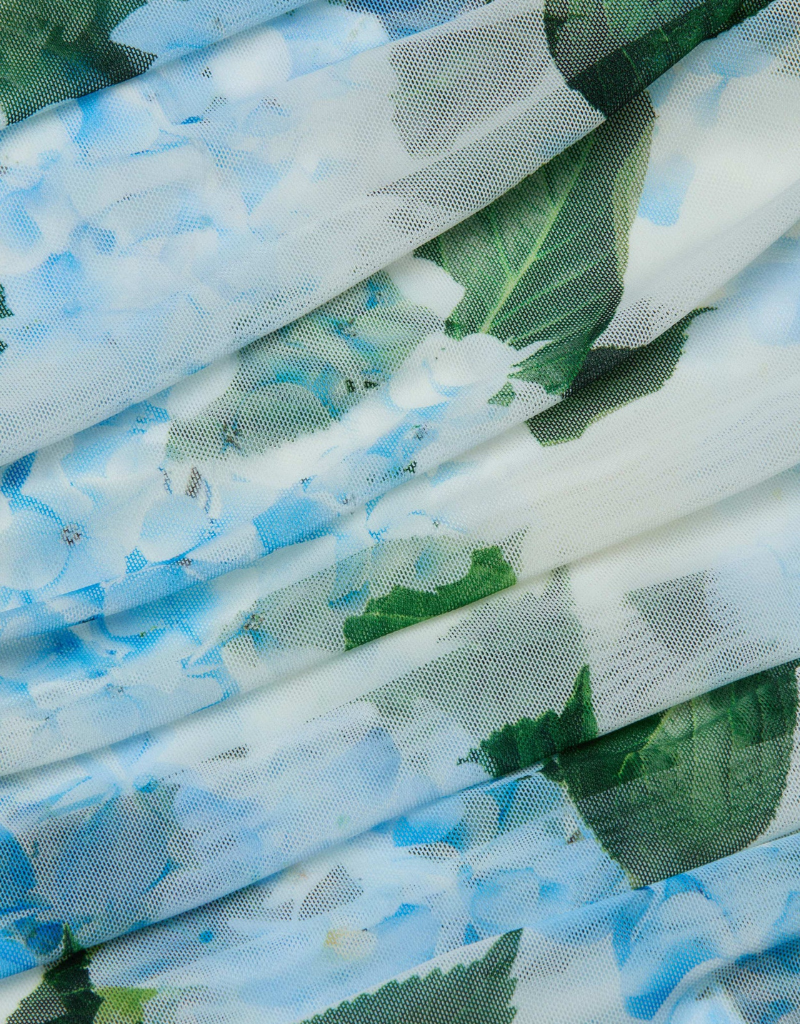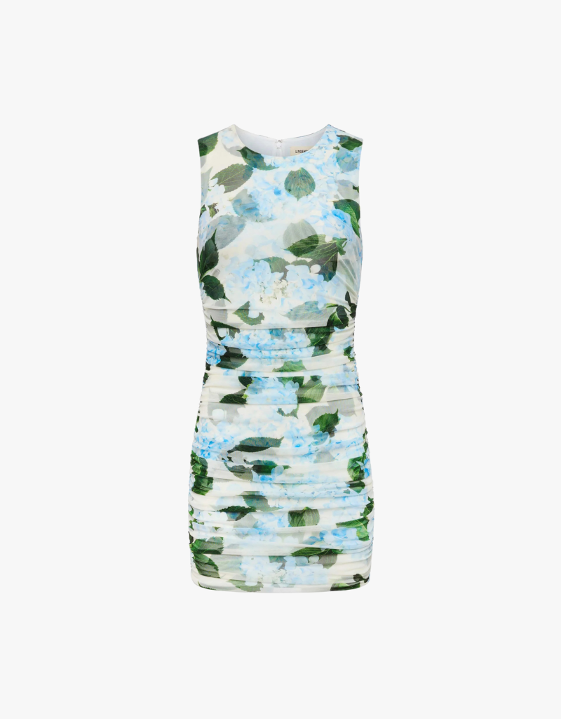 L'agence Sallie Ruched Mini Dress in Ivory & Light Blue Hydrangea
