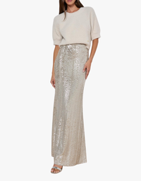 L'agence Sequin Zeta Long Skirt in Silver Sequin Swirl
