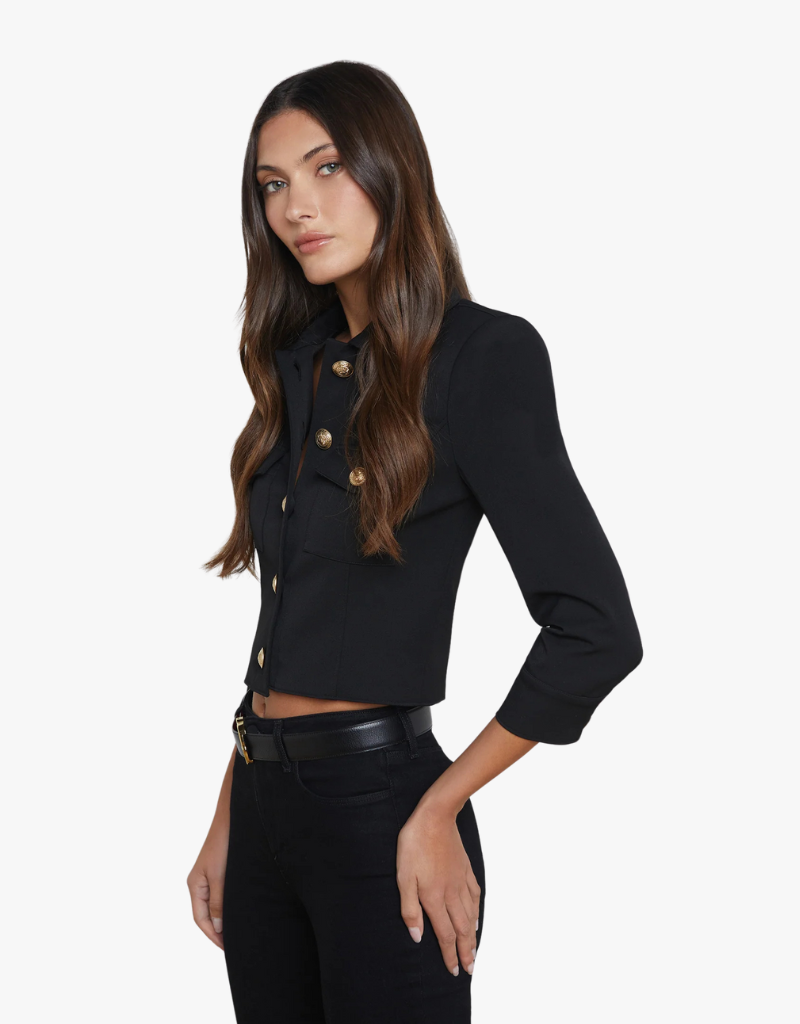 The Kumi Cropped Jacket features a powerful shoulder and slimming silhouette that exudes confident sophistication. Create a flawless look by pairing with high-waisted denim. Don’t miss out on this timeless piece!