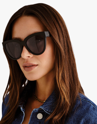 Le Specs Liar Lair sunglasses deliver bold cat-eye style with an oversized, thick frame that commands attention. The sleek flat profile flatters all face shapes, while signature metal hardware elevates the look with understated luxury.
