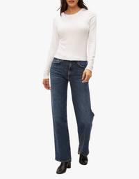 Experience the ultimate staple piece with the Finn Cropped Tee. Featuring a crew neck, long sleeves, and a slightly cropped hem that falls just at the waistband, this "shrunken" silhouette will elevate your wardrobe to new heights.