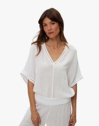 Michael Stars Imani Cropped Dolman Sleeve Top in White