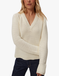 The Linda V Neck Pullover offers a timeless v-neck silhouette with a modern twist, crafted from our luxuriously soft, textured tape yarn. Perfect for cooler days, it features long sleeves and subtle ribbed details at the neckline and cuffs. This versatile sweater is an essential staple for effortless style and comfort in any wardrobe.