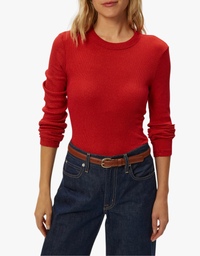 Michael Stars Liyah Ribbed Long Sleeve Tee in Carmine
