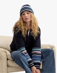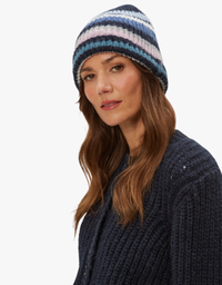 Crafted from soft soufflé knit, this striped beanie offers the perfect blend of warmth and style. A cold-weather essential that’s as functional as it is chic. Make it hers—shop now!