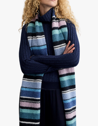 Wrap her in the plush softness of the soufflé knit striped scarf. Cozy and oversized, it adds instant warmth and effortless style. A winter essential—add to cart.