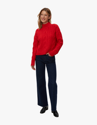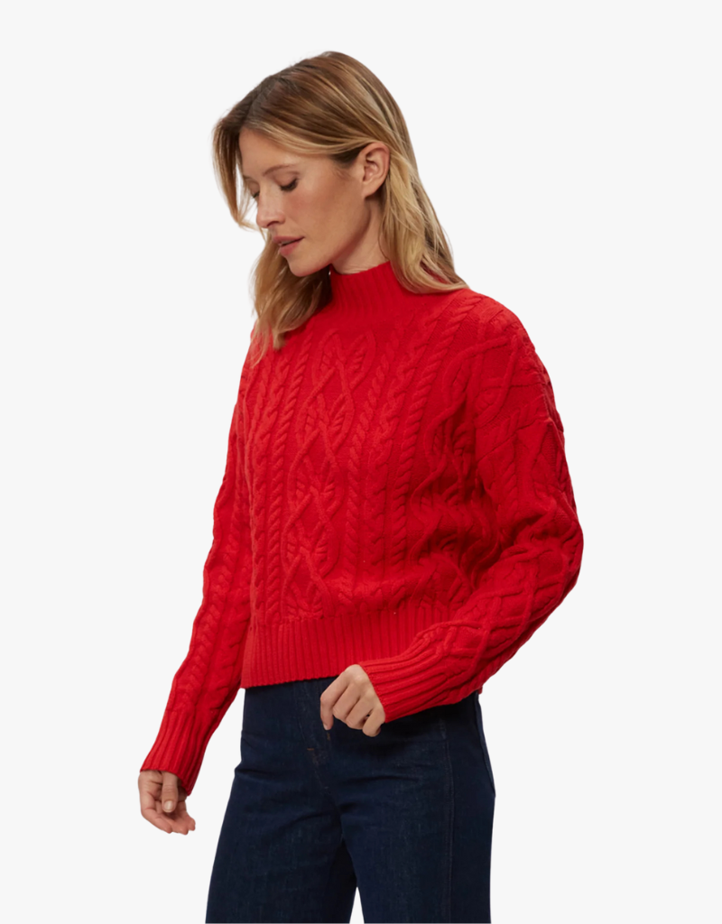 Michael Stars Suki Cable Knit Sweater in Cherry