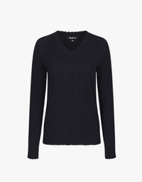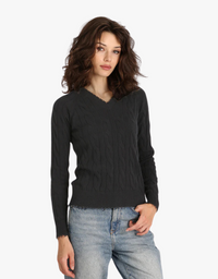 Indulge in ultimate comfort with the Cotton Cable long-sleeve V-neck sweater with Frayed Edges. It's perfect for your next trip or a cozy weekend at home. Pair it with jeans or knit pants for an effortlessly chic casual look.
