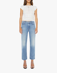 The Kick It Ankle Jean by MOTHER brings a playful twist to a classic straight-leg silhouette. Designed with a flattering high rise and ankle-length inseam, this style is crafted from semi-rigid SUPERIOR denim for a structured yet lived-in feel, finished with subtle whiskering and fading for everyday appeal.