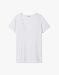 The Carol tee redefines the classic basic with its relaxed fit and V-neck design, crafted from high-quality American cotton. It showcases vintage-inspired short sleeves and self-binding details on the neckline and sleeves, offering both comfort and a refined look.