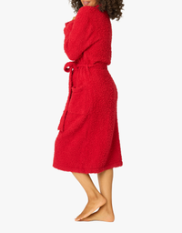 Wrap yourself in festive comfort with this bold red bouclé robe, featuring a self-tie waist and practical front pockets for effortless style. Perfect for holiday mornings, cozy evenings by the fire, or gift-opening moments, it's the ultimate seasonal essential.