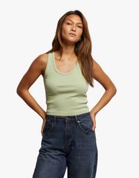 Perfect White Tee Blondie Structured Rib Bra Friendly Tank Top in Pistachio