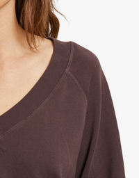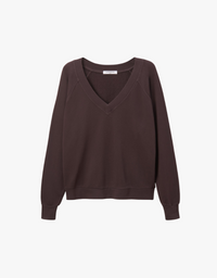 Perfect White Tee Sinead Relaxed French Terry V Neck Sweatshirt in Cocoa Powder