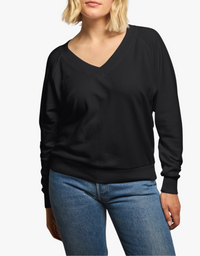 Perfect White Tee Sinead Relaxed French Terry V Neck Sweatshirt in True Black