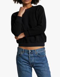 Perfect White Tee Ziggy Inside Out Fleece Long Sleeve Skrunken Crewneck Sweatshirt in True Black