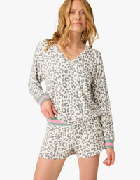 PJ Salvage Life in Leopard Long Sleeve Top in Ivory