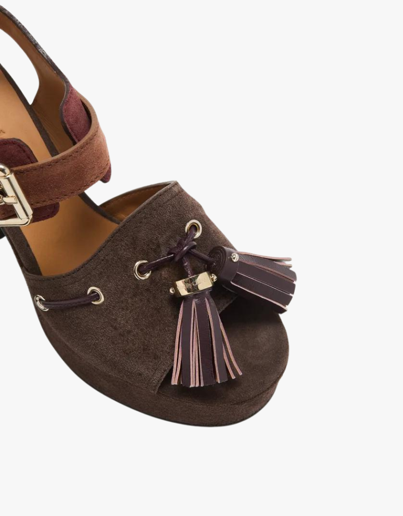 See by Chloe Tassel Patchwork Platform Heels in Dark Brown