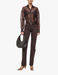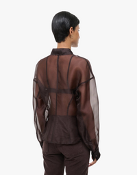 The Aida Top features a lightweight, sheer silk organza fabric with a classic button-down design. Perfect as a versatile layering staple, this blouse offers countless ways to elevate your wardrobe. Make it your go-to piece for stylish and effortless looks!