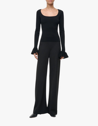 The Shelley Top offers a sleek, fitted silhouette with a striking deep scoop neckline and flared crochet sleeves for added flair. Style it with a skirt for a chic evening outfit or combine it with trousers for a polished office ensemble. Make sure to add this versatile piece to your wardrobe!