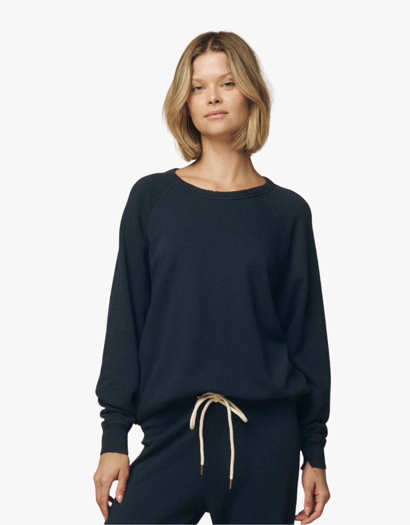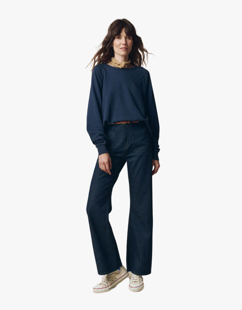 The College Sweatshirt is made from a double washed terry with an incredibly soft hand. It's the perfect combination of vintage charm and modern comfort, making it a versatile piece that can be styled with tomboy-ish staples or paired unexpectedly with feminine skirts and dresses. You'll love the effortless cool this sweatshirt adds to any outfit.
