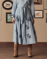 The Cowboy Boot in by The Great blends classic western heritage with romantic detailing. Crafted from soft suede leather, this tall pull-on boot features delicate floral appliqué and embroidery throughout the shaft, creating a vintage-inspired statement with timeless cowboy styling.