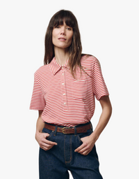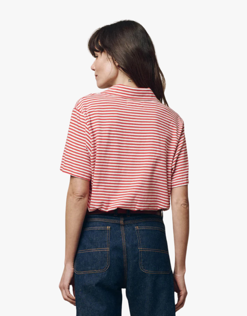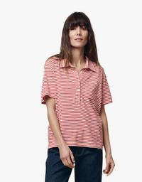 The Great The Lacrosse Polo in Sun Cherry Stripe
