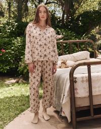 The Pajama Shirt offers exceptional comfort for relaxing at home, drawing inspiration from timeless vintage men’s sleepwear. Featuring a loose, flowing silhouette with an open neckline and button-down front, it showcases delightful retro accents. Made from printed cotton in the Cream Horse Medallion pattern and detailed with piping, it coordinates perfectly with The Easy Sleep Pant to create a chic, matching loungewear set.