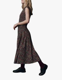 Cut from cotton seersucker, The Paramour Dress features an allover tapestry print reimagined from a vintage find in Northern California. Designed with a dropped waist silhouette and forgiving smocking throughout the body, it’s finished with a pitch sleeve detailed with trapunto stitching. The black ground adds depth and texture to the intricate print.