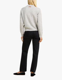 The Oksana Sweater, inspired by a vintage ski style, features soft cashmere, a low mock neck, and a front patch pocket. A chic winter essential—buy yours today!