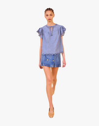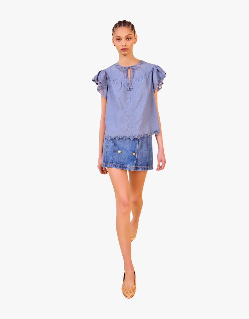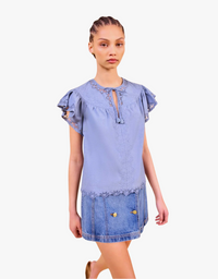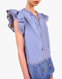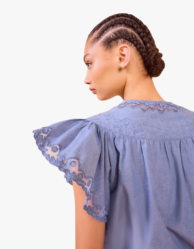 Ulla Johnson Effie Flutter Sleeve Top in Chambray