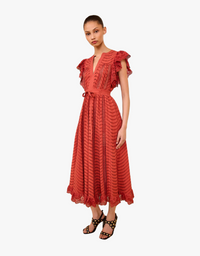 Ulla Johnson Olga Flutter Sleeve Midi Dress in Claret